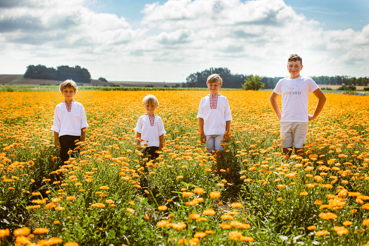 K ekologickému zemědělství nás to táhlo odjakživa. Definitivně jsme se rozhodli po narození prvního syna a vysázeli jsme byliny na části pozemku za domem. Dodávame vám krásný měsíček, chrpu, sléz, růži a slunečnici. Dnes celkově obhospodařujeme 62 ha pozemků a paletu bylinek se snažíme dále rozšiřovat. Vedle bylin se také staráme o ovocné sady a založili jsme i chov drůbeže – vše samozřejmě v ekologickém režimu.