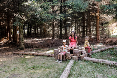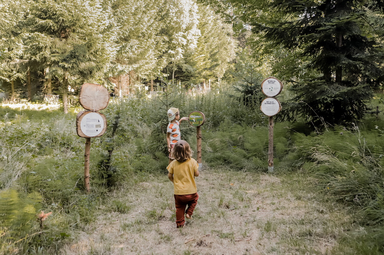 Juli. Ein heißer Sommertag im Kräutergarten von SONNENTOR in Sprögnitz.  Dennoch weht eine angenehme, kühlende Brise. Nicht nur im Schatten der Bäume findet man Erholung und Abkühlung. Seit Kurzem findet man im nahe gelegenen Waldstück ein Kinderparadies vor, oder besser gesagt, einen kreativen Erholungsraum für Klein und Groß: