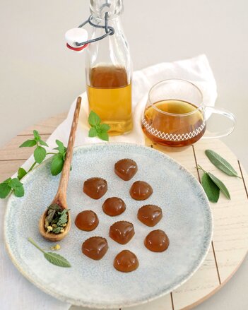 Den Tee abseihen und 100 ml davon in einen Topf füllen. Agar-Agar unterrühren und dabei darauf achten, dass sich keine Klümpchen bilden. Den restlichen Tee zugießen, alles unter Rühren aufkochen lassen und für 1-2 Minuten sprudelnd kochen lassen.
