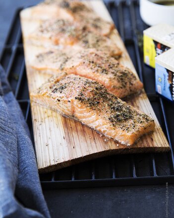 Lachsfilet auf Zedernholzbrett gegrillt