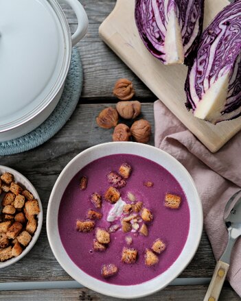 Farbenfroh und köstlich. Die Rotkrautsuppe ist die ideale Vorspeise für die kalte Jahreszeit.