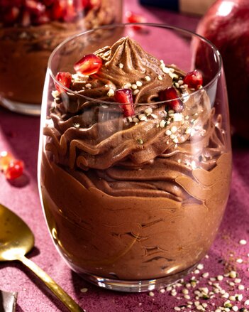 Nach Belieben mit Kakao, gehackter Schokolade, Hanfsamen oder Granatapfel garnieren und genießen.