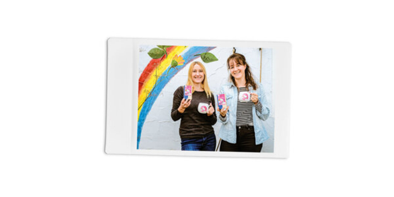 Die beiden störte das aber wenig. Sie hatten nur noch Augen für Sternenstaub und Regenbögen und arbeiteten auf eigene Faust einen Entwurf aus: Christina zeichnete die Einhorn-Illustration und Andrea lieferte die passenden Texte. Dann präsentierten sie das fertige Produkt.