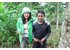 The photo shows two people holding freshly harvested ginger and galangal in their hands.